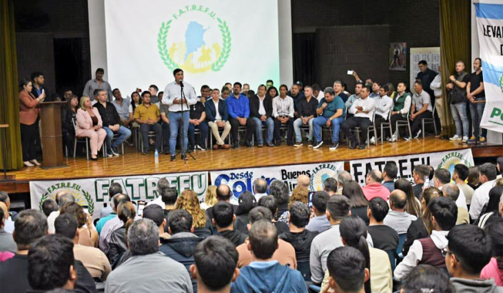 El nuevo Secretario de Prensa de FATREFU, Germán Aloy Alos, resaltó que el lanzamiento de la organización recibió el respaldo de dirigentes y legisladores, entre ellos miembros del bloque de diputados libertarios, el senador nacional Abdala y secretarios generales de distintos gremios, quienes subieron al escenario para acompañar la presentación de la nueva conducción.