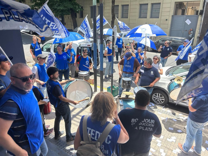“Basta de atraso salarial”, manifestó la conducción de UTEDYC La Plata, en una nueva acción gremial para visibilizar la situación del personal de la institución.