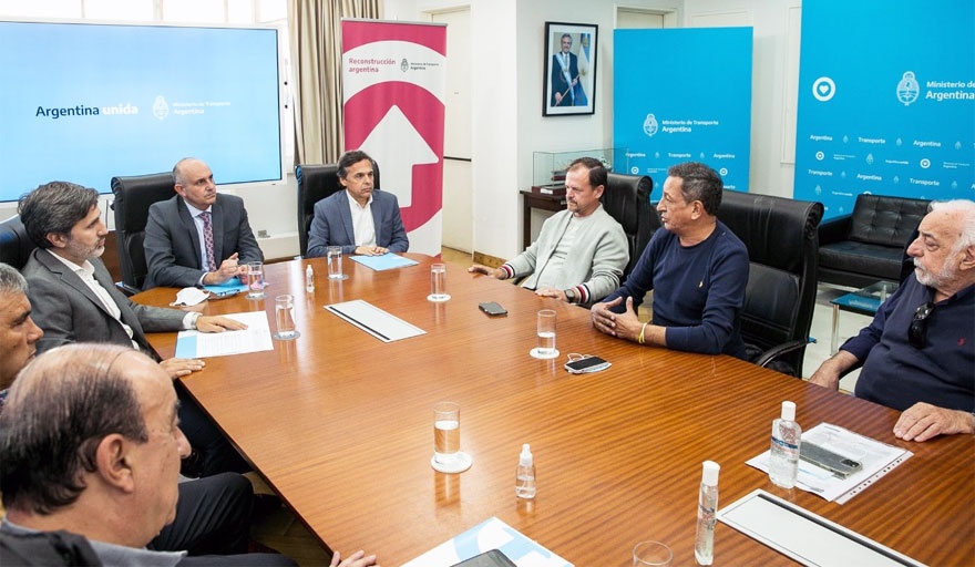 Por su parte, el titular del Ministerio de Transporte de la Nación recibió a la delegación de referentes sindicales acompañado por su jefe de gabinete, Álvaro Herrera, y por el secretario de Transporte de la Nación, Diego Giuliano.