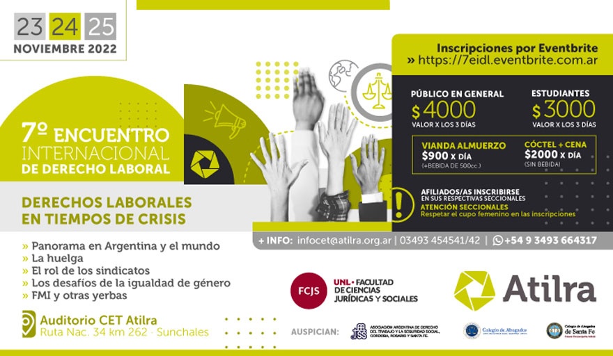 ATILRA destacó que “esta instancia de conocimiento, exposición, debate y pluralidad de voces cuenta con el apoyo del Colegio de Abogados de Santa Fe, el Colegio de Abogados de Rafaela y la Asociación Argentina de Derecho del Trabajo y la Seguridad Social de Córdoba, Rosario y Santa Fe”.