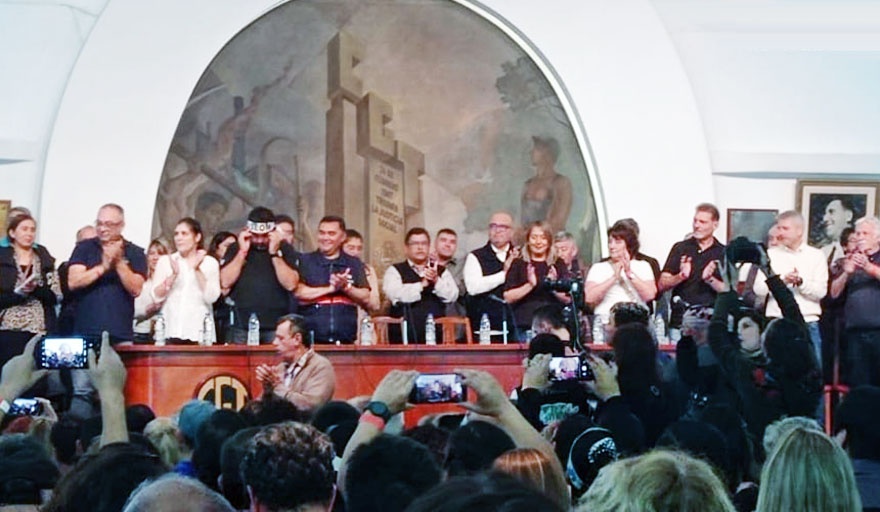 El acto de asunción de las autoridades se realizó en el salón de actos Felipe Vallese, en el edificio de la CGT nacional, con una importante presencia de público, además de la asistencia de referentes de fuerzas políticas.