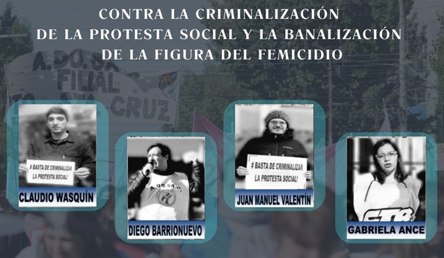 “Rechazamos el cambio de carátula que abre la puerta a la prisión preventiva de cuatro luchadores sociales por la movilización del 21 de abril de 2017 frente a la residencia de la gobernadora Alicia Kirchner”, subrayó la entidad gremial santacruceña.