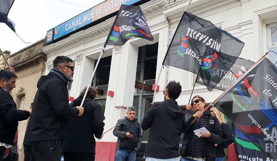La Seccional Entre Ríos del Sindicato Argentino de Televisión (SATSAID), que conduce Adrián Peserico, se manifestó este lunes frente a la sede de Canal 9 Litoral, en Paraná, para rechazar “despidos arbitrarios” en la empresa.