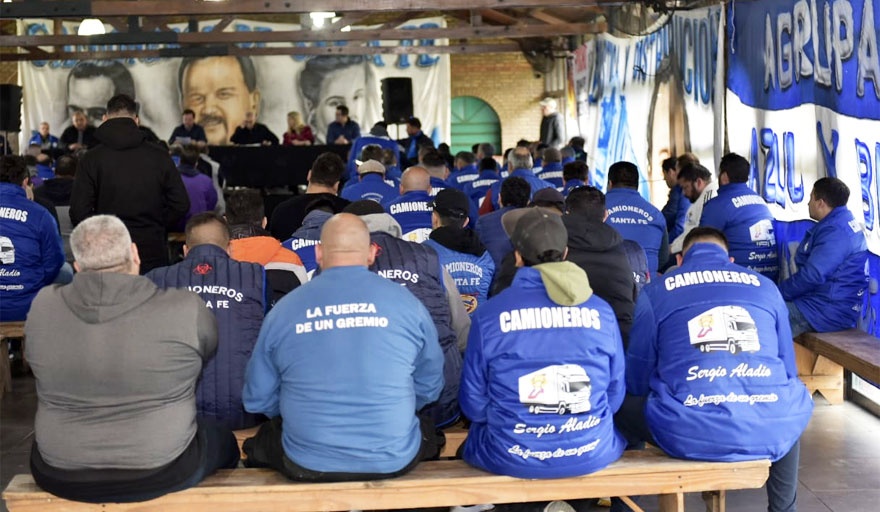 Aladio encabezó una Asamblea Ordinaria provincial de Camioneros de Santa Fe que se desarrolló este jueves, en instalaciones del predio que posee el gremio, que “tuvo un fuerte significado por su convocatoria y su contenido en el actual contexto provincial y nacional”, indicó el sindicato.