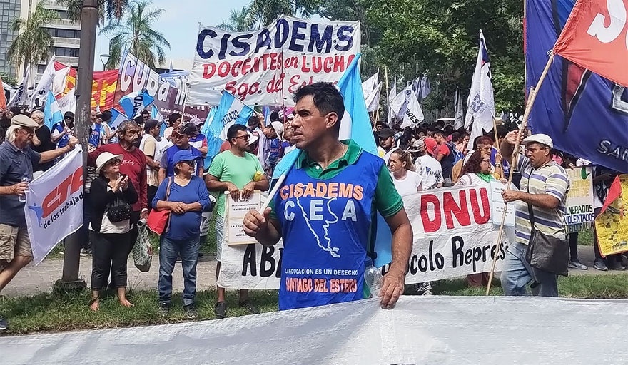 El gremio CISADEMS de docentes de Santiago del Estero marchó “en defensa de los derechos laborales y de la educación como derecho social”, en el marco del paro nacional de este miércoles contra el DNU y la Ley Ómnibus que impulsa el gobierno nacional.