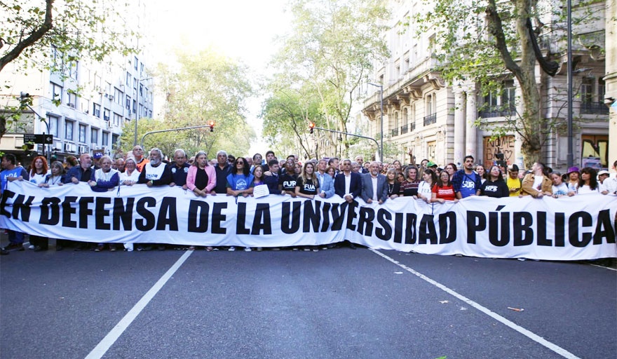 La movilización fue impulsada por el Frente Sindical de Universidades Nacional ꟷconformado por CONADU, CONADU Histórica, FEDUN, CTERA, FAGDUT, UDA, FATUN y FUAꟷ junto con el Consejo de Rectoras/es (CIN) y la Federación Universitaria Argentina (FUA).