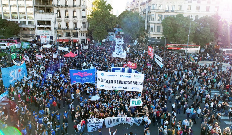 La Federación Nacional de Docentes Universitarios (CONADU) resaltó la Marcha Federal Universitaria de este martes como “una movilización histórica de las y los argentinos” en defensa de la universidad pública.