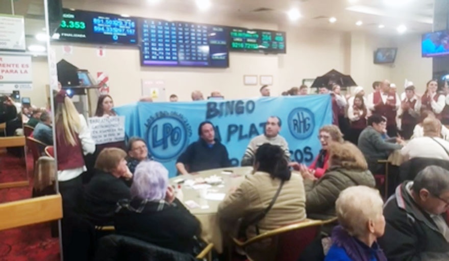 La Unión de Trabajadores del Turismo, Hoteleros y Gastronómicos de la República Argentina (UTHGRA) reclamó en el Bingo La Plata el pago de los aumentos salariales acordados en paritarias.