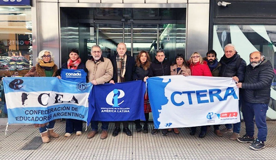 La CEA estuvo representada en la Embajada de Guatemala por su Secretario General, Fabián Felman; la Secretaria de Cultura y Educación, Laura Man; por la CTERA estuvieron el Secretario de Relaciones Internacionales, Eduardo Pereyra; la Secretaria Gremial, Angélica Graciano; y por CONADU su Secretario General, Carlos De Feo; y también asistió la Secretaria General de UTE, Monona Gutiérrez.