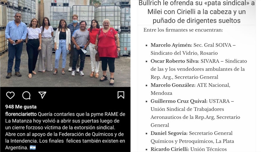 Entre ellos, destacan su relación pública con figuras como Florencia Arietto, conocida por su trabajo contra los “bloqueos” sindicales y por incriminar a trabajadores que participaron en huelgas y paros. Tanto Rodríguez como Arévalo han posado junto a Arietto en redes sociales, destacando su trabajo conjunto para combatir estas prácticas sindicales, consignaron.