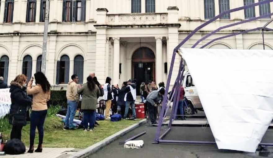 El Sindicato de Empleados de la Obra Social de la Provincia de Entre Ríos (SEOSPER) acompaña la instalación de la carpa y la vigilia frente a la Casa de Gobierno, en Paraná, como parte de sus acciones gremiales en defensa del IOSPER.