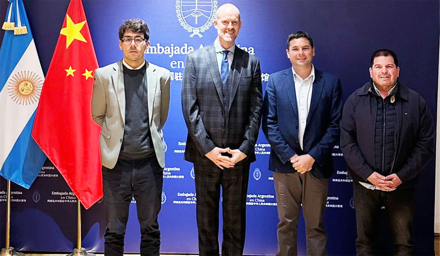 La delegación también fue recibida en la Embajada Argentina en China, donde se concretó un encuentro con el Ministro de la Sección Económica y Comercial, Cristian Sokolowski, y el Secretario Rodrigo Gómez.