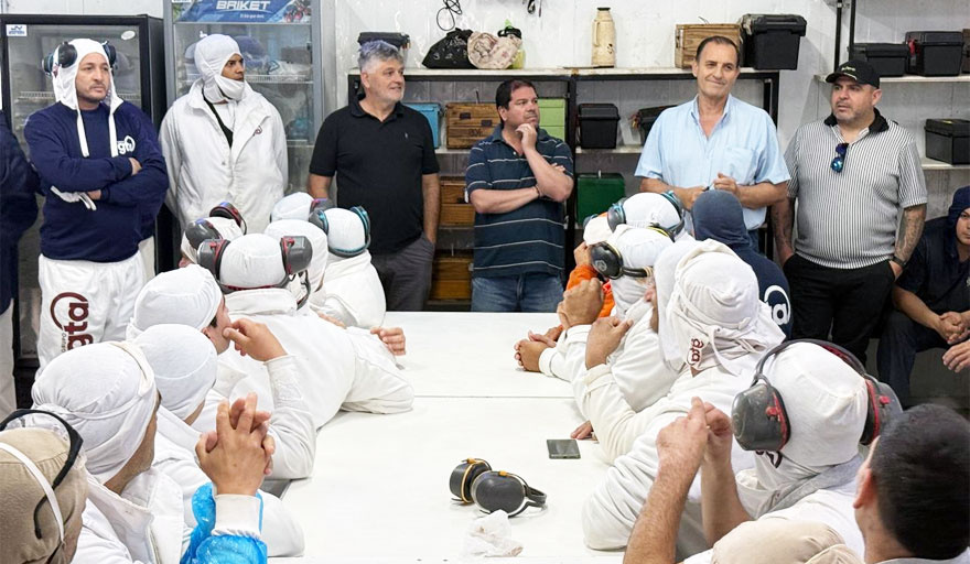 Participaron de la asamblea el Secretario General de la filial Concepción del Uruguay, Sergio Vereda; el Secretario de Organización de la Federación de la Carne, Carlos Molinares; y el integrante de la Junta Directiva Nacional, Félix Coto, junto a delegados y trabajadores del frigorífico.