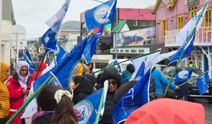 “Paramos por salario digno, por inversión real en las escuelas y por la defensa de la educación pública y de calidad”, se pronunció AMET Tierra del Fuego.